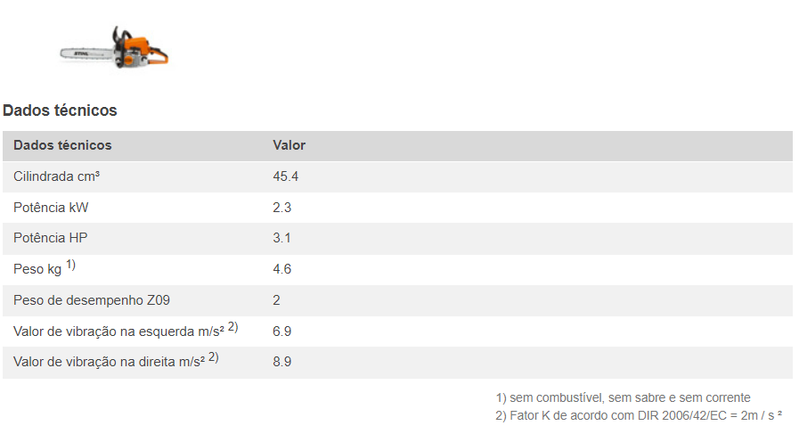 A motosserra STIHL MS 250 é compacta, leve e possui um excelente torque. Sua potência permite realizar trabalhos de forma rápida e produtiva. É indicada para uso em fazendas, sítios, chácaras, pomares, fruticultura e arborização.